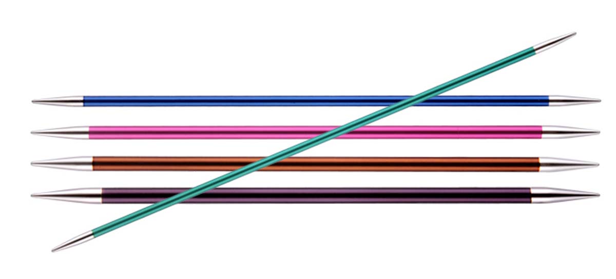 Colour coded alu double pointed knitting needles, with galvanized metal tips.
