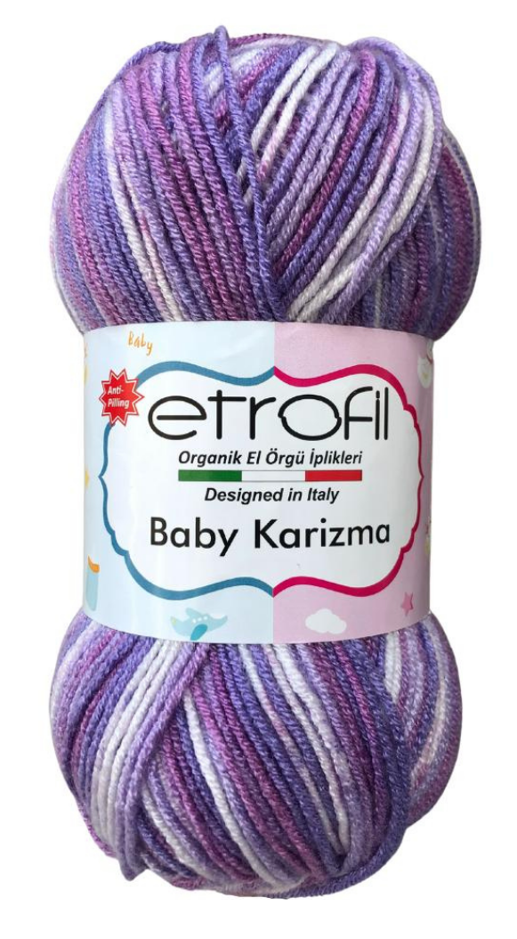 Baby Karizma is a universal, glossy, soft acrylic yarn made with the latest anti-pilling technology. It does not fluff, and the small lumps formed during use and wear fall off on their own, so the projects made from it remain beautiful for a long time.