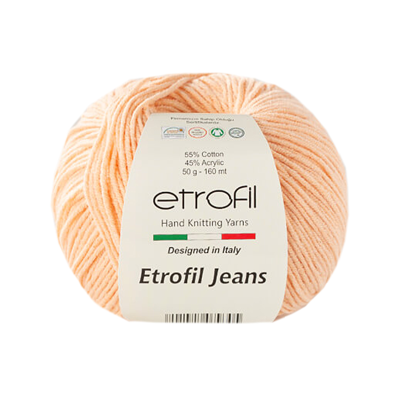 Az Etrofil Jeans az egyik legnépszerűbb Etrofil fonal. Kötésre, és horgolásra egyaránt használható, univerzális fonal, 45 színárnyalatban. A legelterjedtebb felhasználási területe az amigurumi: a belőle készített figura puha tapintású, mégis formatartó. Nem bolyhosodik, bírja a mosást. Kisgyermekek számára is kifejezetten ajánlott, hiszen rendelkezik GOTS és ÖKO-TEX tanúsítványokkal, de készíthetsz belőle takarót, kardigánt, sapkát, sálat, zoknit, de akár a lakásod kiegészítőit, vagy táskát is.