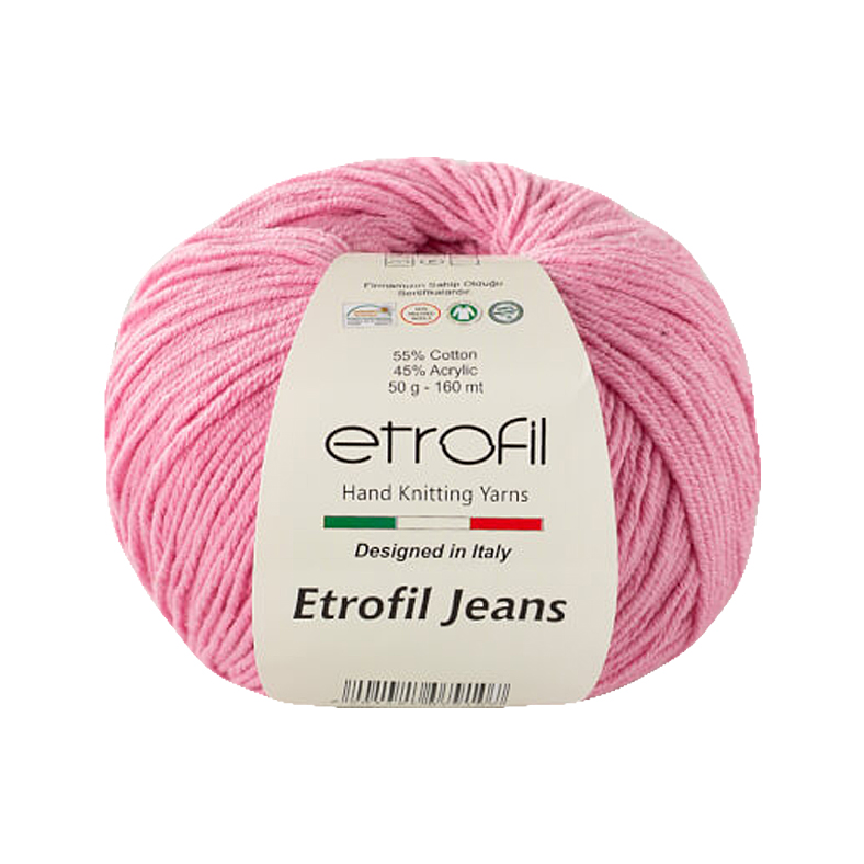 Az Etrofil Jeans az egyik legnépszerűbb Etrofil fonal. Kötésre, és horgolásra egyaránt használható, univerzális fonal, 45 színárnyalatban. A legelterjedtebb felhasználási területe az amigurumi: a belőle készített figura puha tapintású, mégis formatartó. Nem bolyhosodik, bírja a mosást. Kisgyermekek számára is kifejezetten ajánlott, hiszen rendelkezik GOTS és ÖKO-TEX tanúsítványokkal, de készíthetsz belőle takarót, kardigánt, sapkát, sálat, zoknit, de akár a lakásod kiegészítőit, vagy táskát is.
