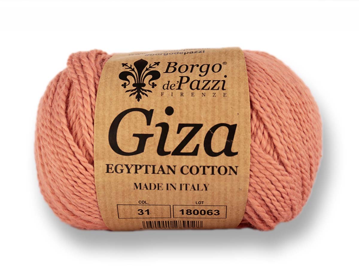 Giza és Giza Piú fonalak a Nílus-deltában termesztett „Giza 86” kódjelű gyapotból készülnek, melyet egyedülállóan kézzel takarítanak be, és válogatnak, ezáltal óvva a különleges minőségű gyapotszálakat a sérüléstől. Ez az alapanyag tette híressé az egyiptomi pamutot. Ma már minden pamutholmira, amely Egyiptomban termesztett gyapotot tartalmaz, ráírják, hogy egyiptomi pamut, pedig az ország gyapottermelésének ez a különleges alapanyag csupán néhány százalékát teszi ki. A Borgo de Pazzi Giza fonalai valóban a legkülönlegesebb egyiptomi gyapotból készülnek, amely összetéveszthetetlen tapintásáról, és viselési komfortjáról azonnal megismerhető.