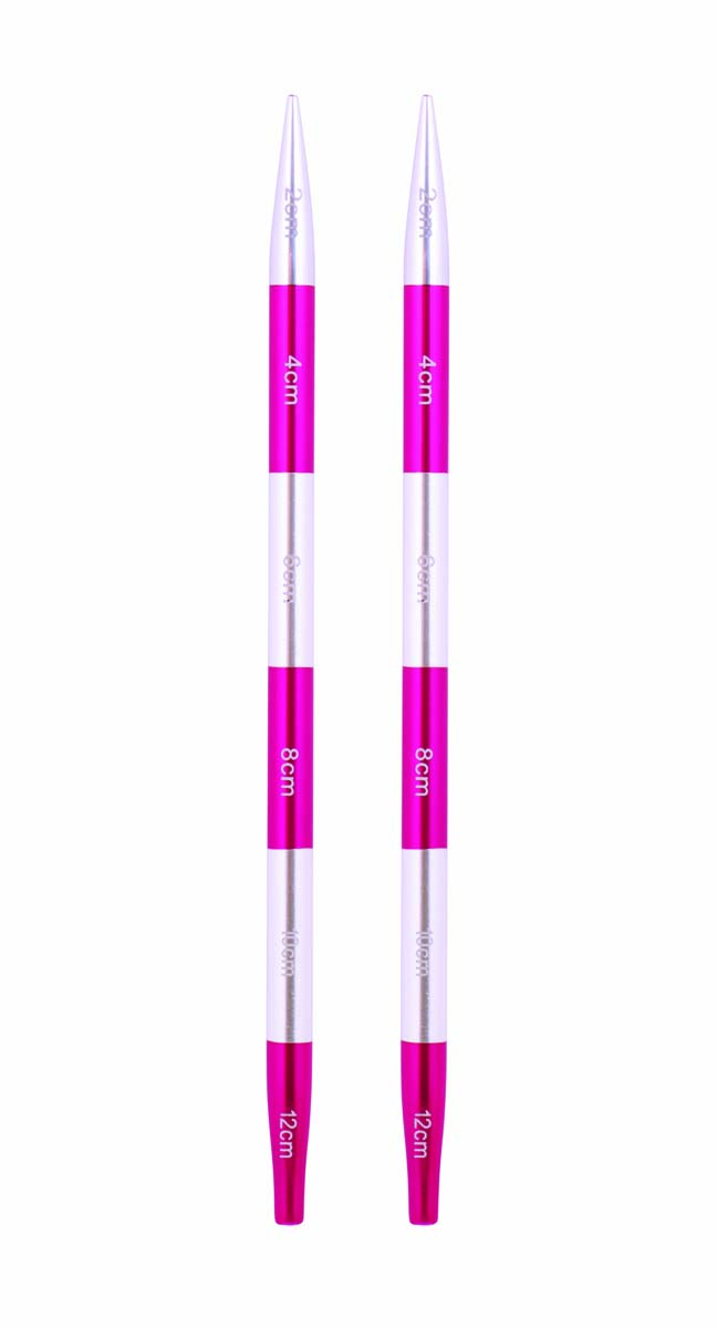 Hladké a lesklé kovové špičky ihlíc s delením na 2 cm. Každá veľkosť má inú farbu.